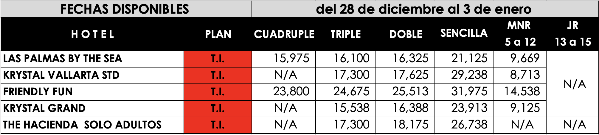 - Todos los Hoteles son Plan Todo Incluido